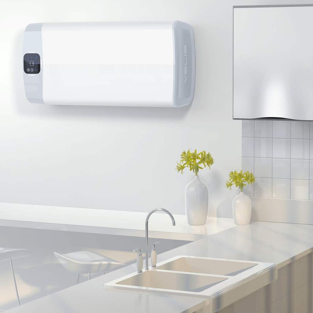 Le chauffe-eau électrique Velis Evo se distingue par sa conception compacte et élégante. Sa couleur blanche lui permet de s'intégrer harmonieusement dans tous les intérieurs.