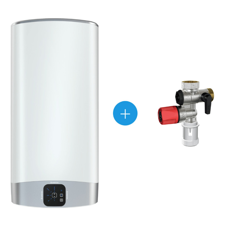 Ariston VELIS EVO Chauffe-eau électrique plat 80L, 1500W, Classe énergétique B, Blanc + Groupe de sécurité raccordement femelle Ø 3/4”