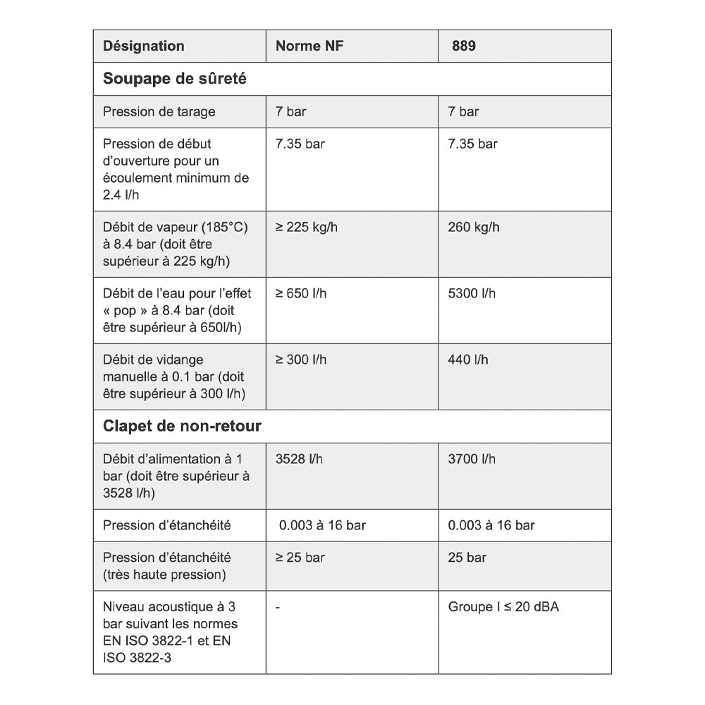 - Pression de fonctionnement admissible (PFA) en eau : 7 bar
