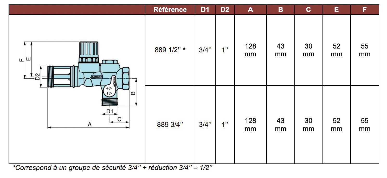 Comap groupe de sécurité hydraulique laiton, raccordement femelle Ø 3/4 (889006-01)