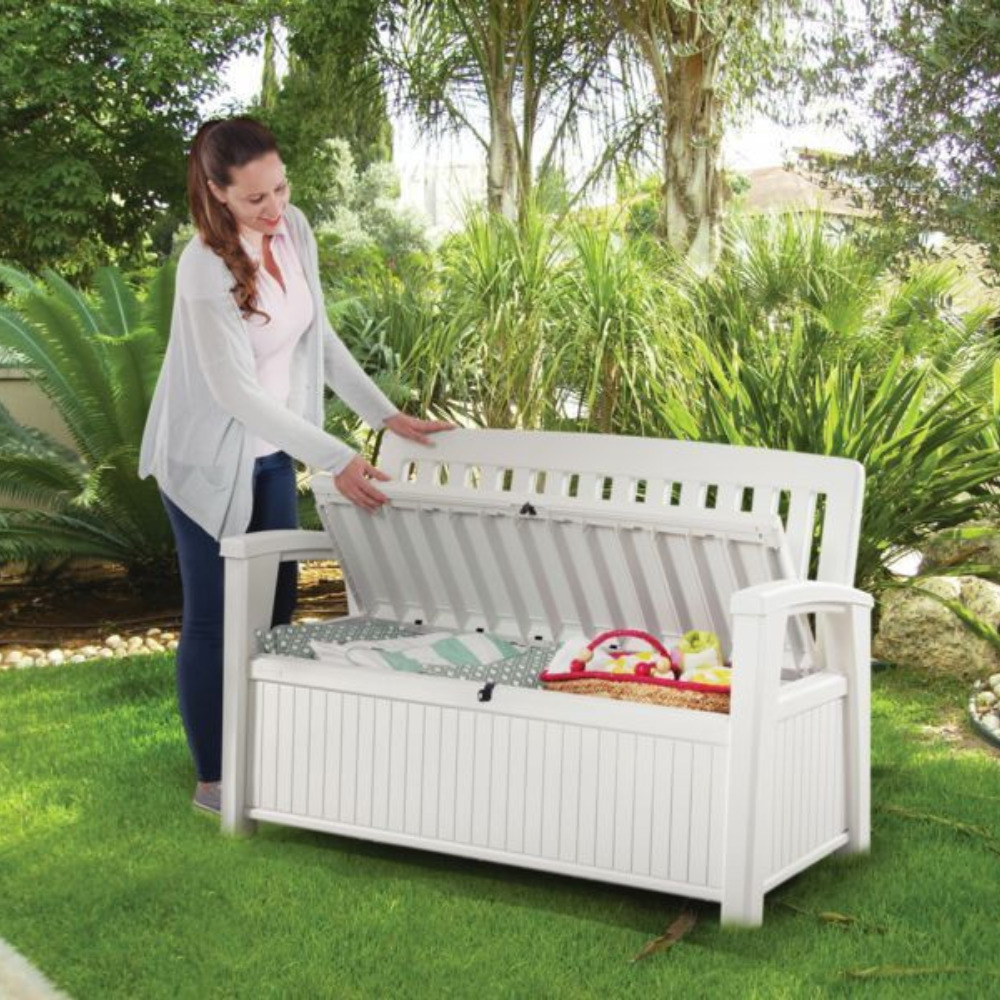 Keter Patio bench227L Banc de rangement 138,6 x 63,5 x 88 cm, blanc (253818)