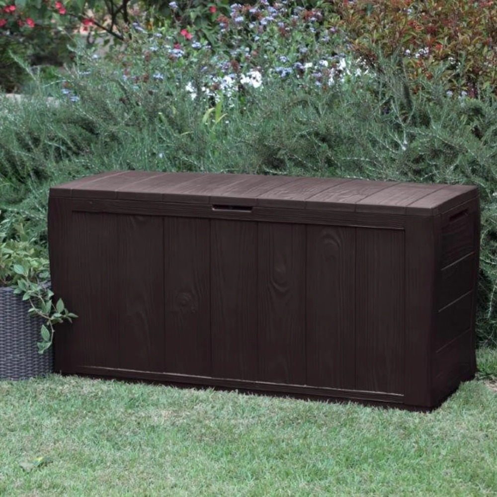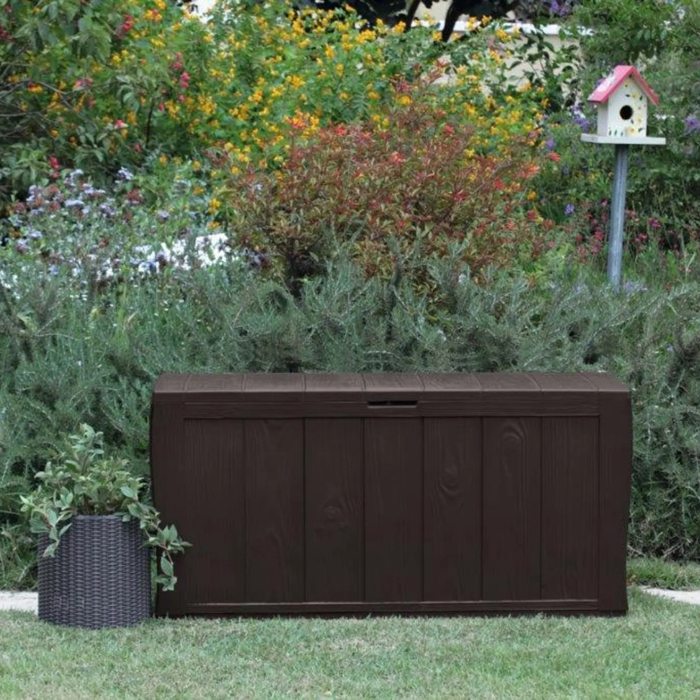 Coffre de jardin Keter Sherwood 270 L en résine aspect bois marron (230403)