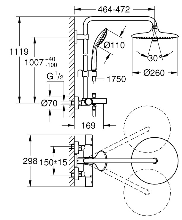 - Longueur du bras de douche:450mm