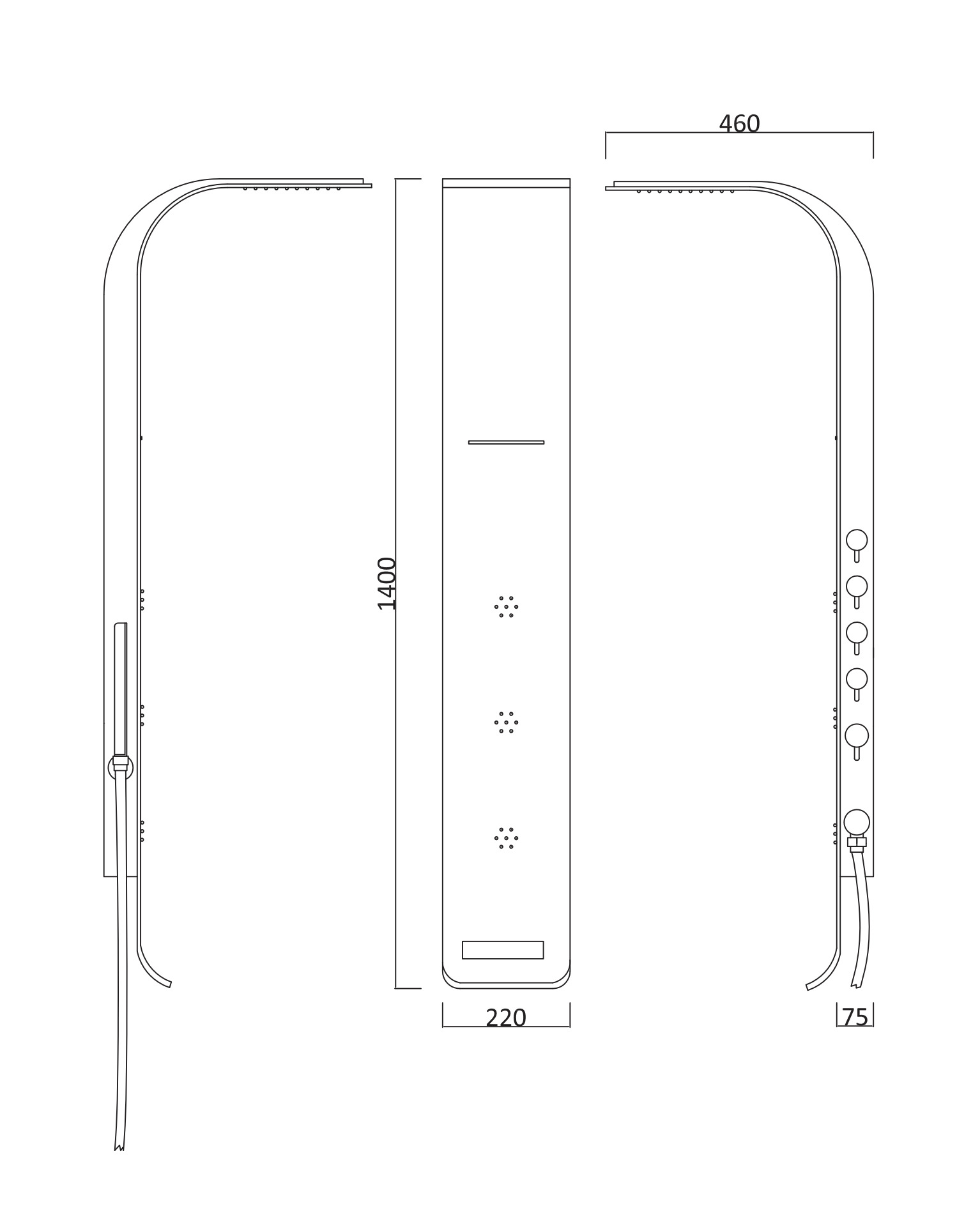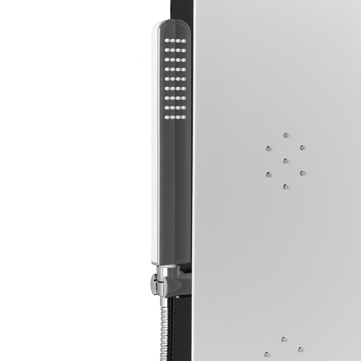 - Fonctions : douche de tête, cascade, douchette à main, jets de massage