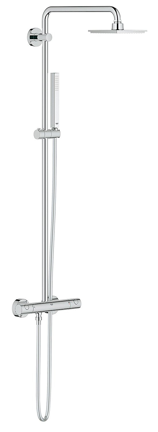 Grohe est une marque leader sur le marché du sanitaire. Elle se spécialise particulièrement dans le domaine de la robinetterie. Avec ce set colonne de douche Grohe 27932000, vous apporterez plus de confort dans votre salle de bain. En effet, la colonne de douche 27932000 que nous vous présentons utilise les meilleures technologies Grohe. Grâce à un limiteur de débit à 38 °C, vous préviendrez tous risques de brûlure pour vos enfants. En optant pour ce mitigeur thermostatique, vous ferez également d’importantes économies d’eau, car le débit d’eau est limité à 8 litres par minute.