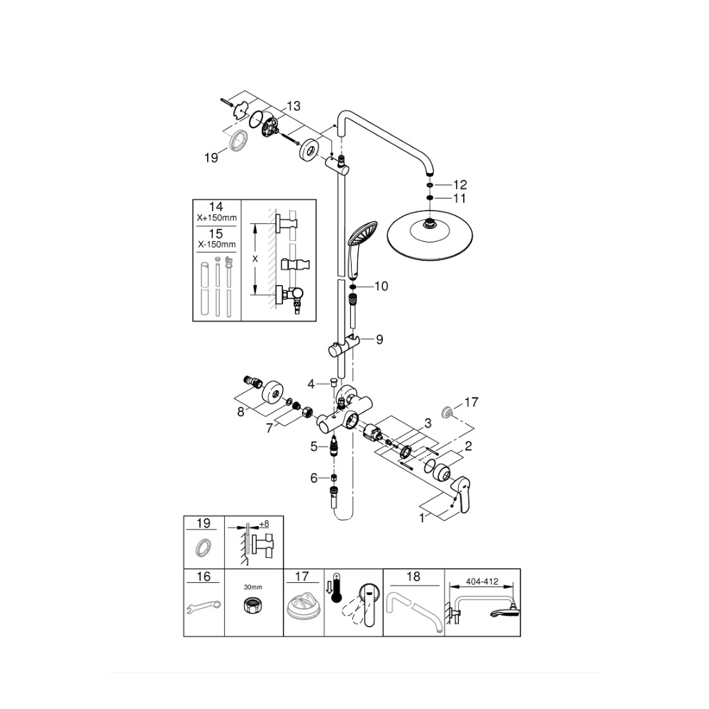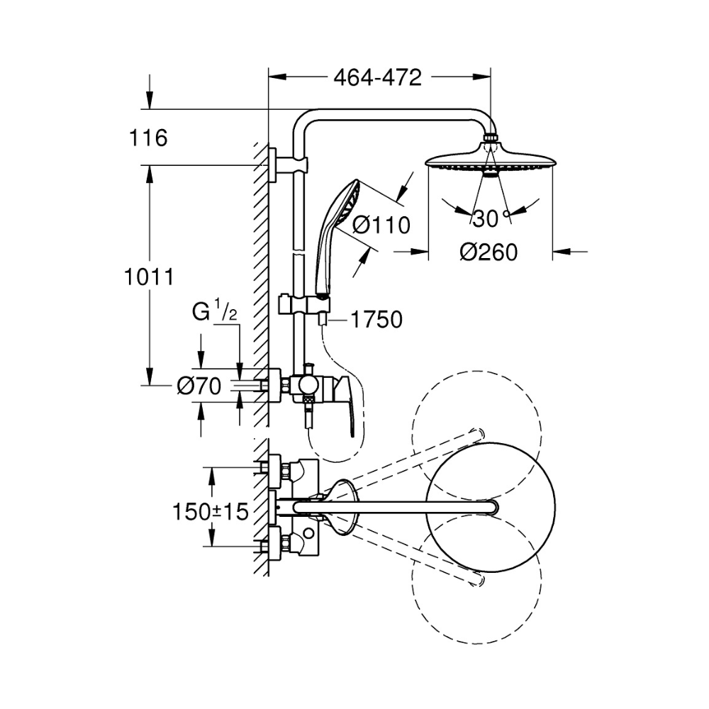 - Diamètre douche de tête (mm):260