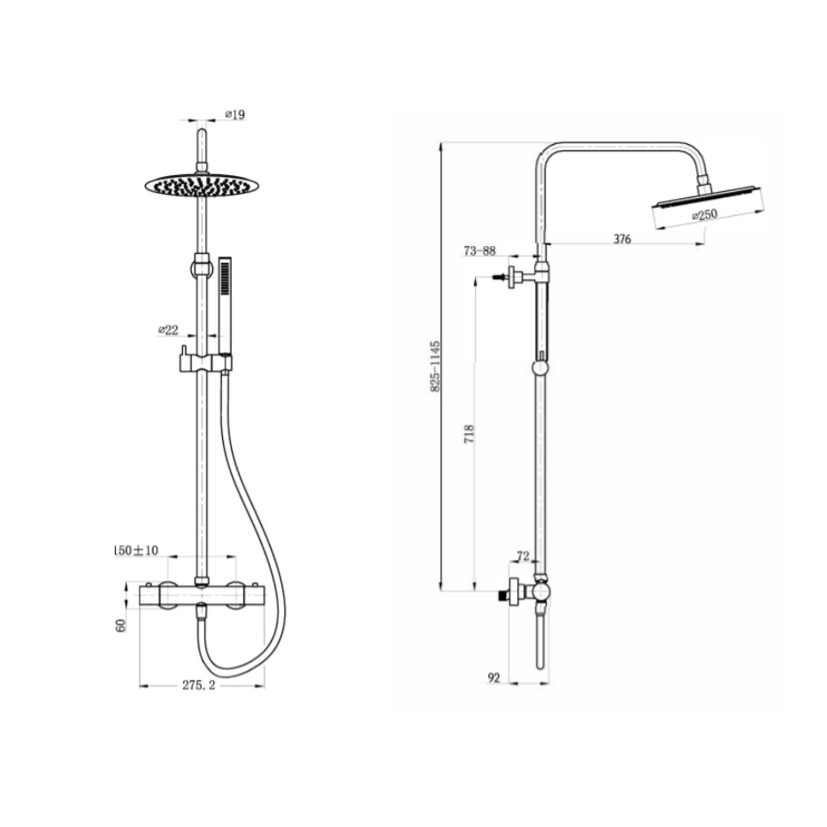 Caractéristiques de la Colonne de douche avec douchette stick, Mitigeur thermostatique, Barre réglable en hauteur, Gun métal (SATDASSTK) :
