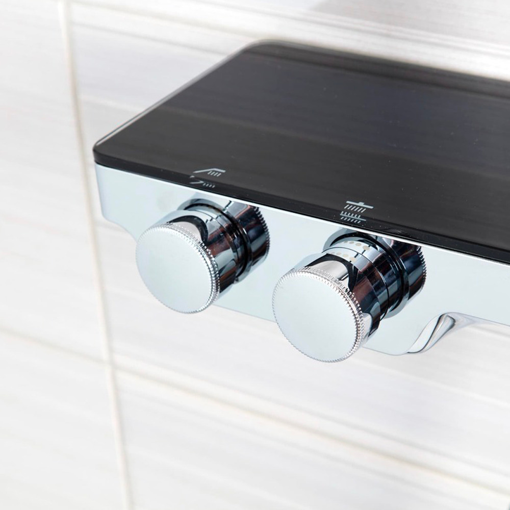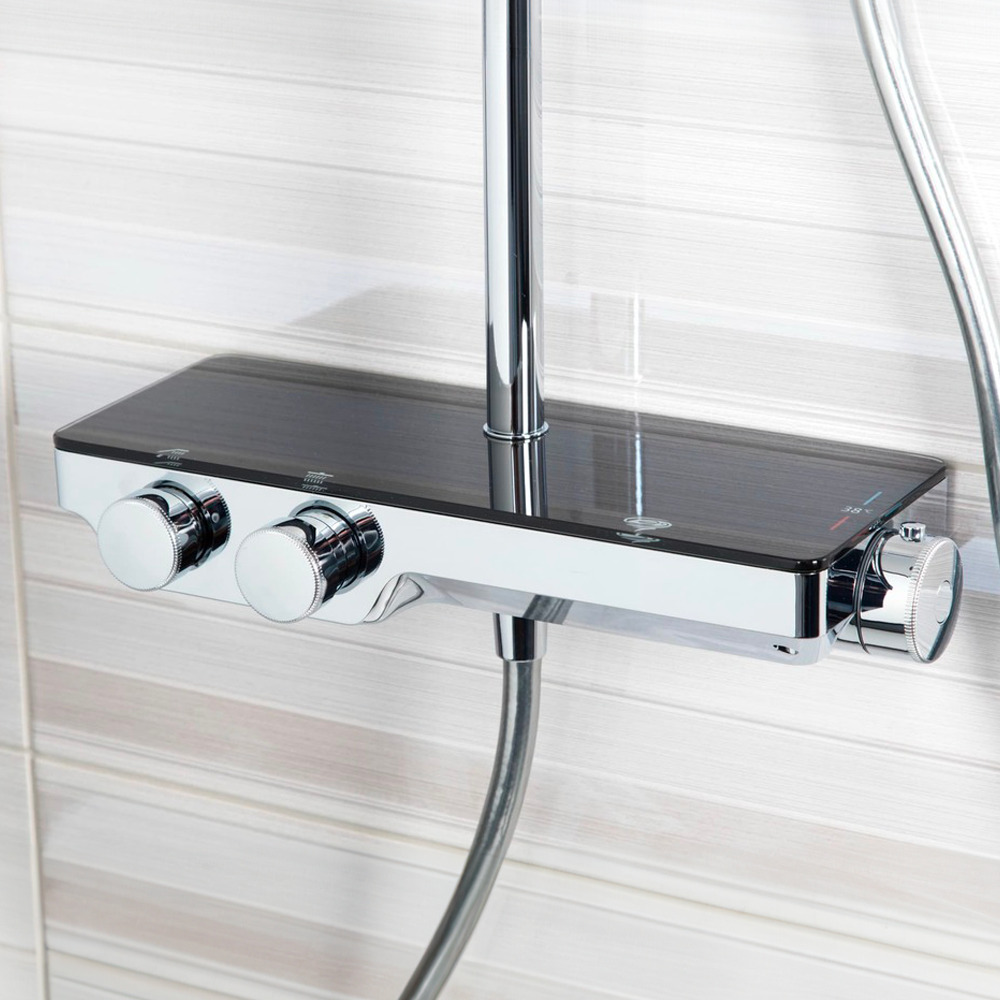 Caractéristiques de la Colonne de douche avec douchette 3 jets, Mitigeur thermostatique, Barre réglable en hauteur, Noir/Chrome (SATSSTPBCHC) :