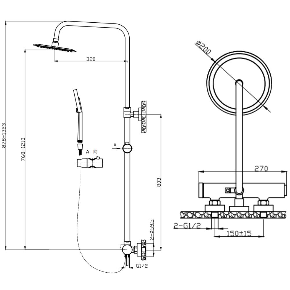 Caractéristiques de la Colonne de douche avec mitigeur mécanique + Douche de tête 200mm + Douchette 3 jets, Chrome (SATSSPK) :