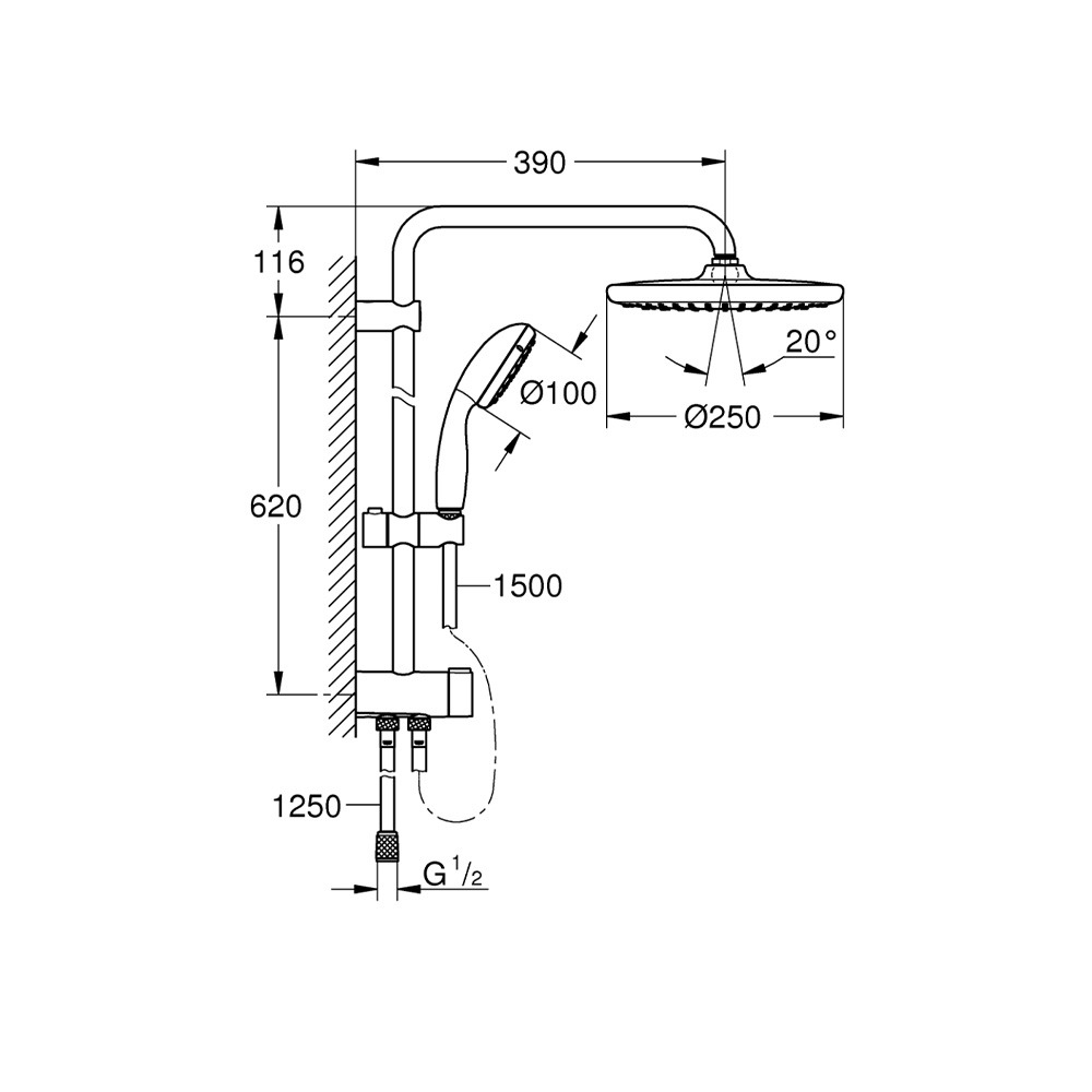 - Diamètre douche de tête (mm):250