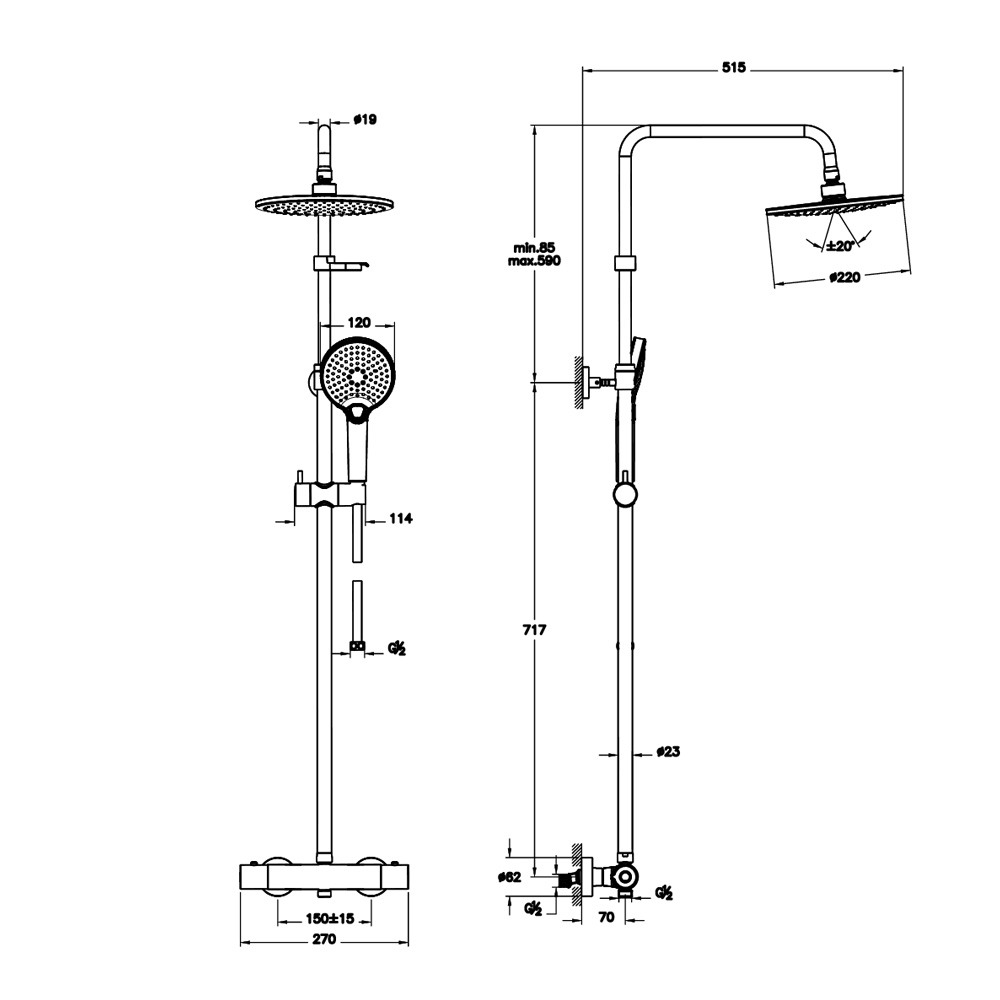 - Diamètre douche de tête (mm):220