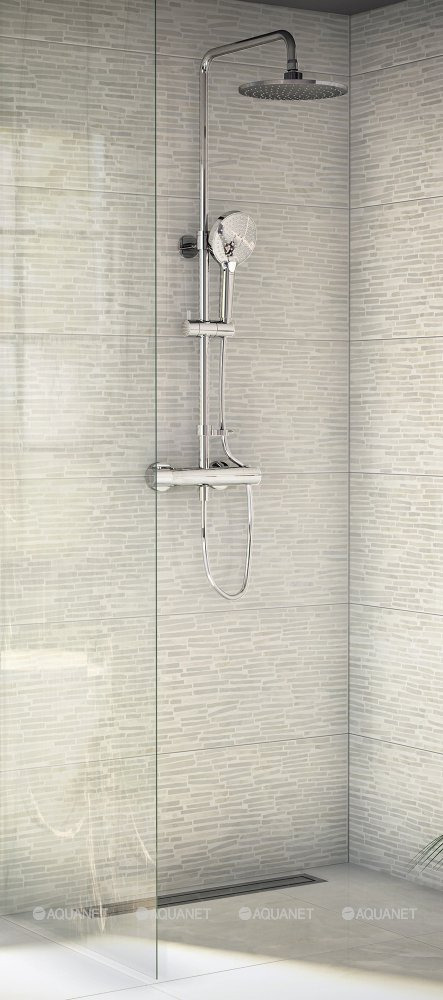 Vitra AQUAHEAT JOY Colonne de douche thermostatique, tête de douche XXL 220 mm + Douchette 3 jets, Chrome (A47200EXP)