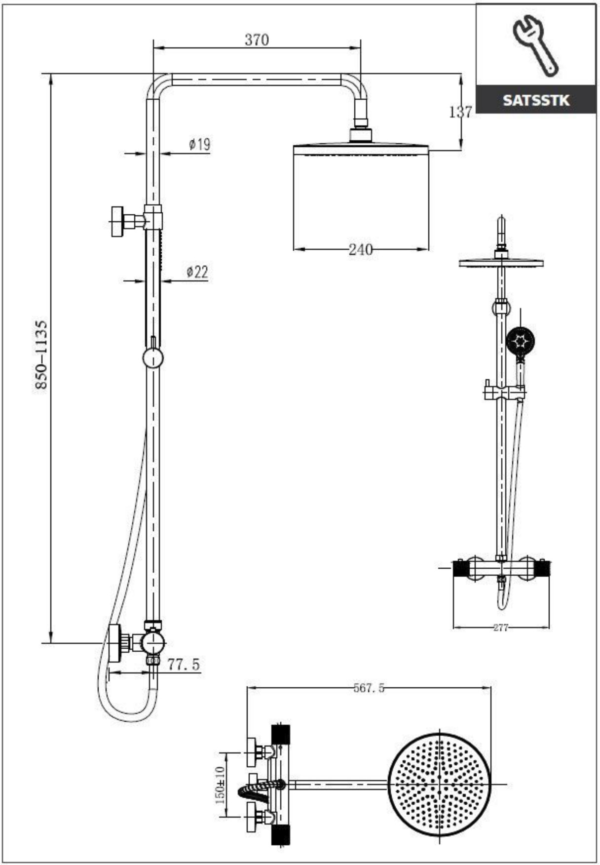 Propriétés de la colonne de douche avec mitigeur thermostatique (SATSSTK) :