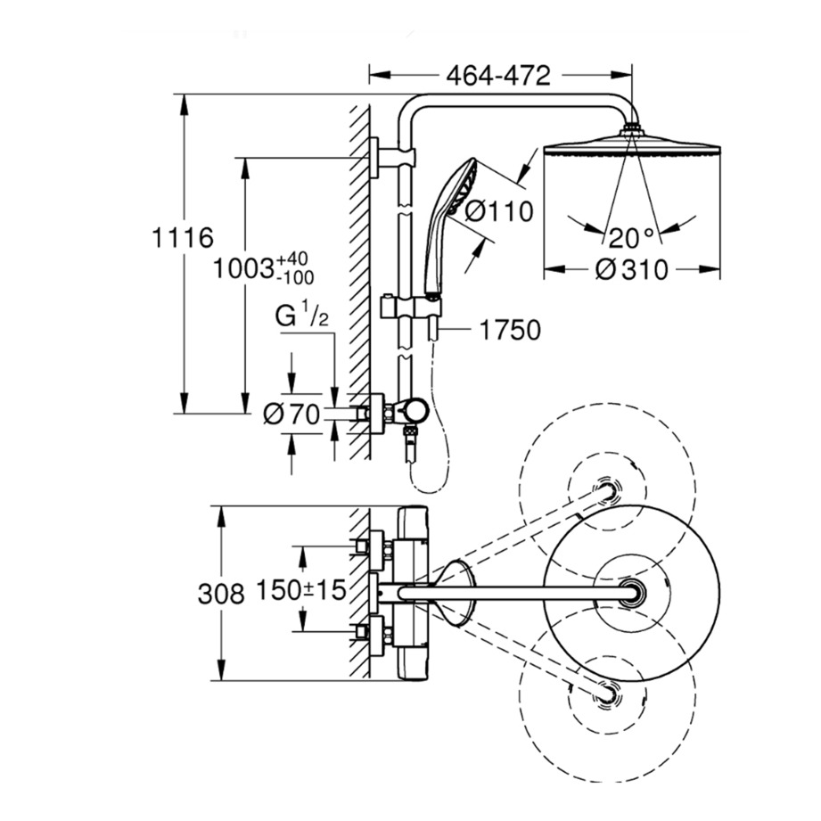 - Diamètre douche de tête (mm):310
