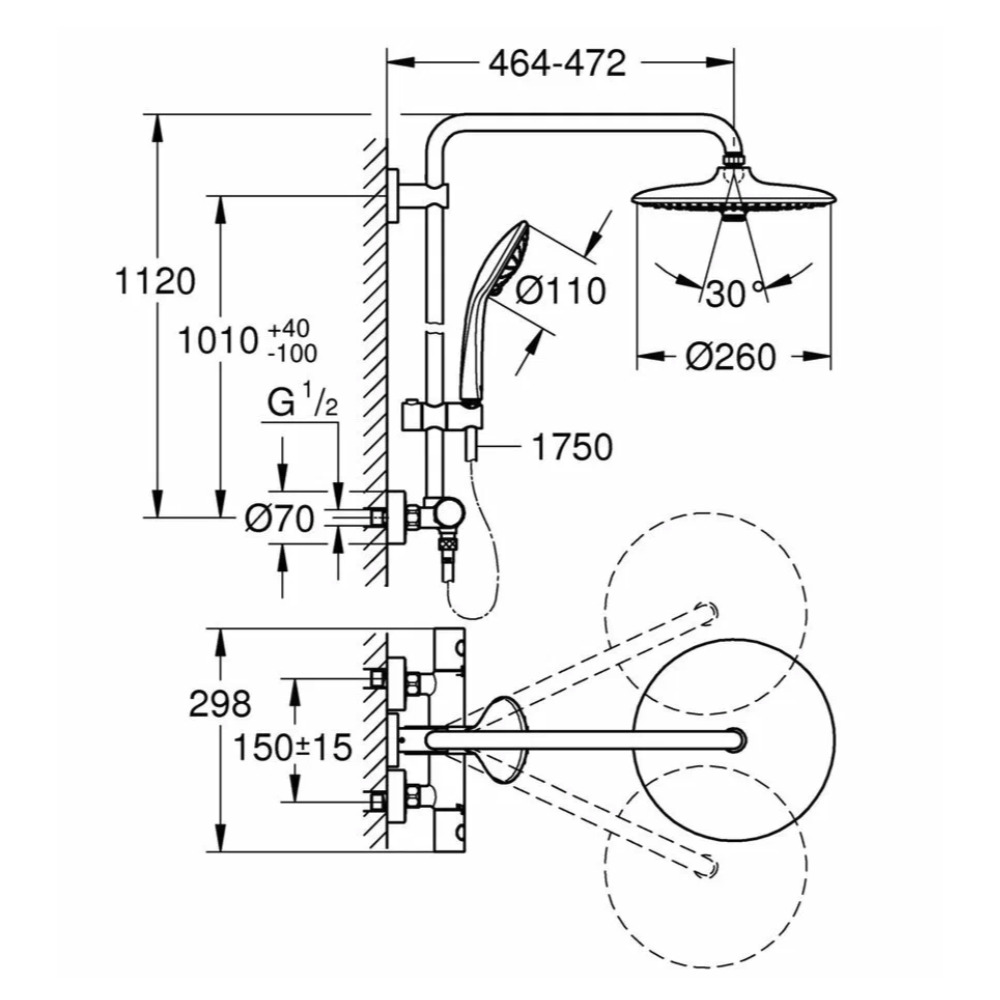 Vitalio Joy System 260, colonne de douche avec mitigeur thermostatique, douche de tête 3 jets (26539000)