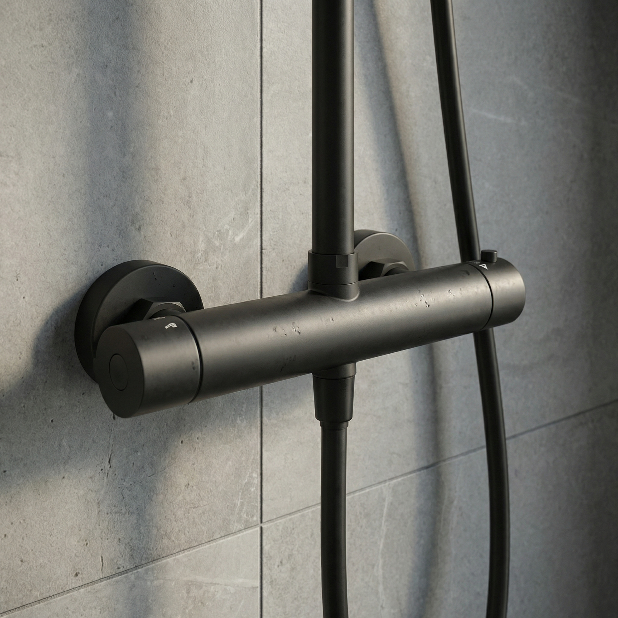 Colonne de douche XXL 250 avec mitigeur thermostatique, Douchette 3 jets, noir mat (SATSSTKEC)