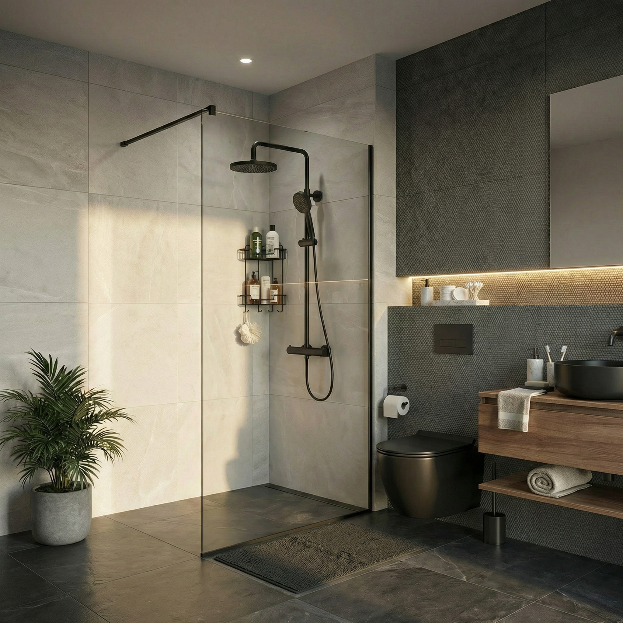 Que ce soit le pommeau ou la douchette, jets doux très agréables (3 réglages pour la douchette). Ensemble sobre, design et pratique. Un peu juste en hauteur pour les personnes qui sont grandes.