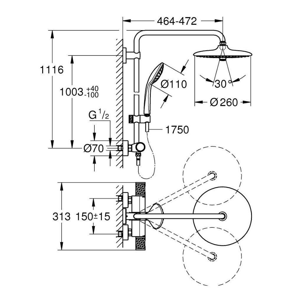 • Diamètre douche de tête (mm): 260