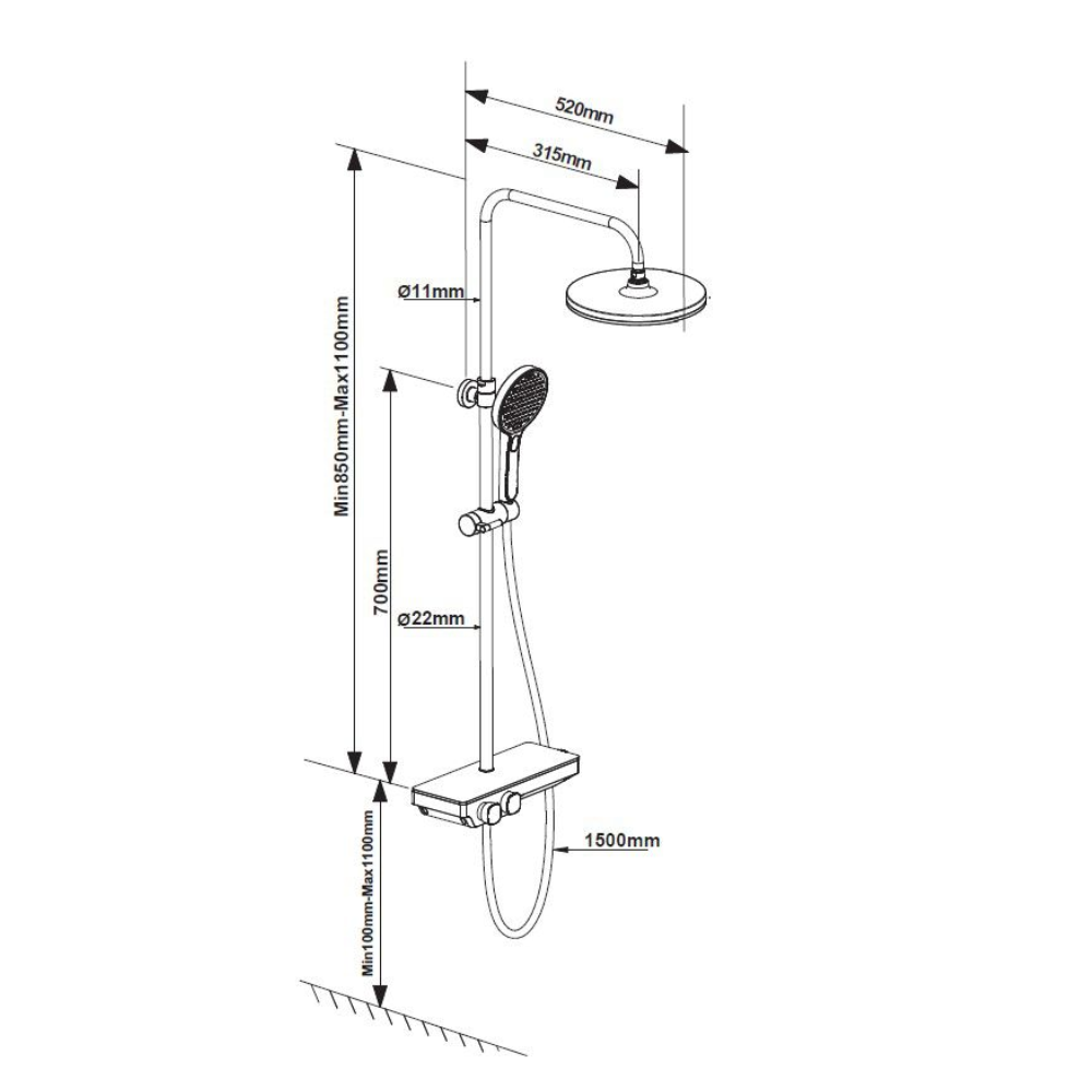 Caractéristiques de la colonne de douche + mitigeur thermostatique + Douche de tête + Douchette 3 jets + Tablette Swiss Aqua Technologies, noir mat (SATSSTPBCHMC) :