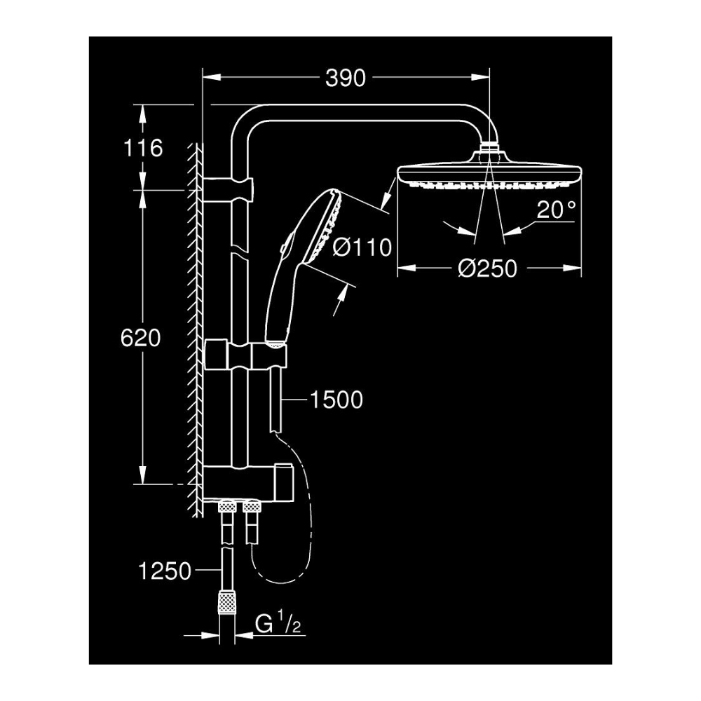- Diamètre douche de tête (mm):250