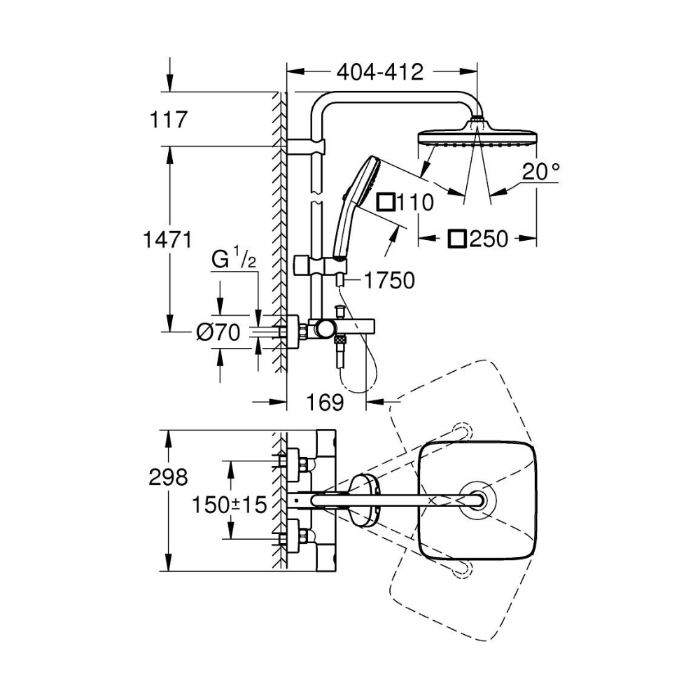 Grohe Vitalio Comfort 250 colonne de douche thermostatique bain/douche + douche de tête + douchette à main, noir mat (G269842431)