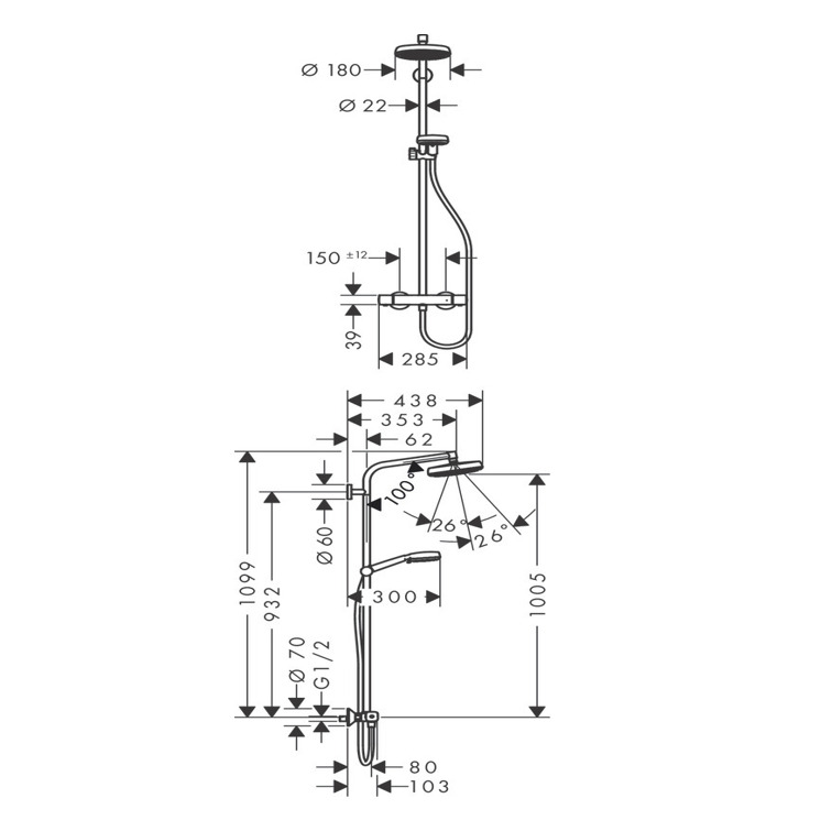 Hansgrohe Showerpipe Crometta 160 colonne de douche 1 jet (27264400)