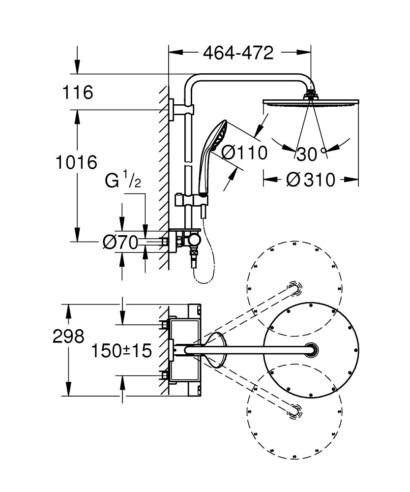 - Diamètre douche de tête (mm):310