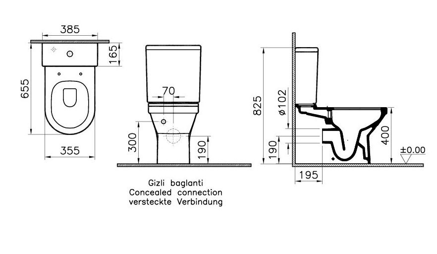 Caractéristiques de la Cuvette S50 monobloc sans bride (rimless), compact, Blanc (5746B003-0585) :