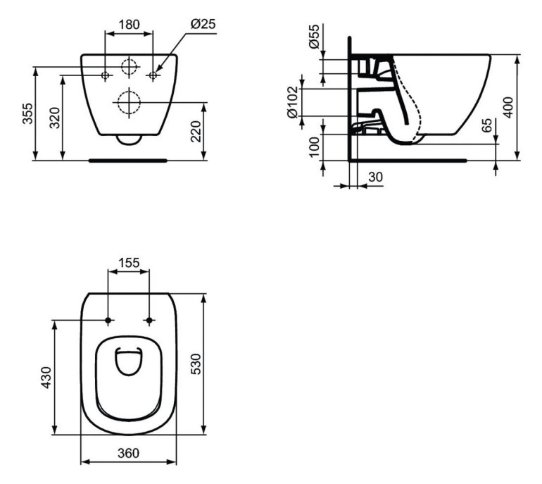 - Cuvette suspendue au design élégant sans aucune protubérance