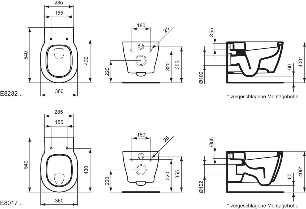Ideal Standard CONNECT Cuvette suspendue 340 x 360 x 540 mm,blanc (E801701)