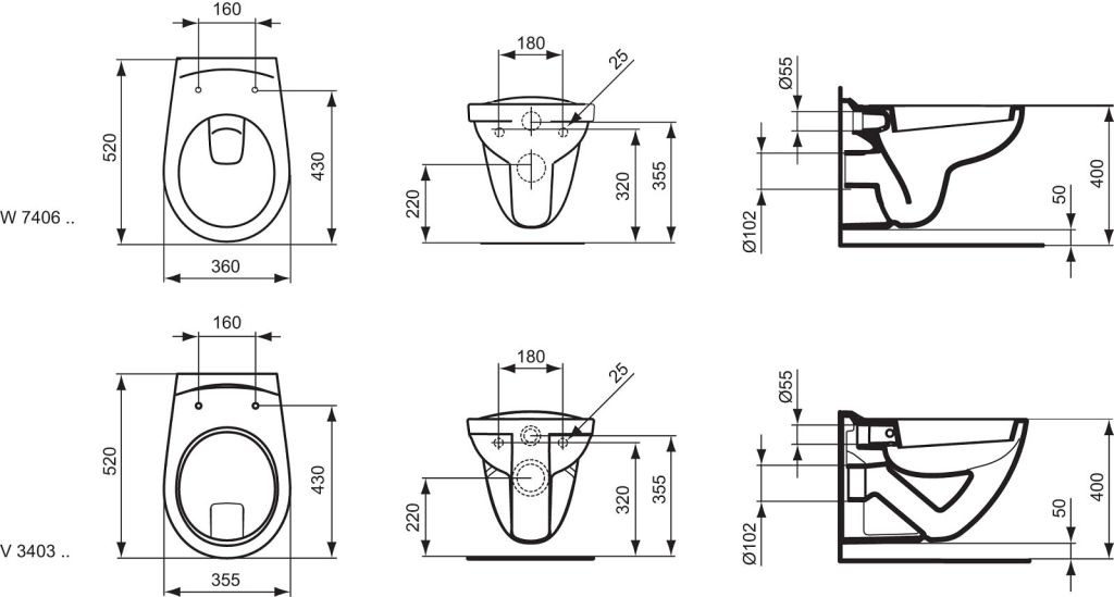 Ideal Standard WC Suspendu Cuvette Eurovit 355 x 520 x 370 mm (V390601)