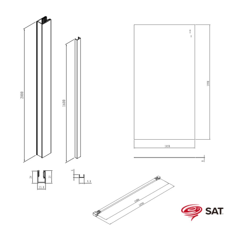 Caractéristiques de la paroi de douche Walk-In anticalcaire avec profilés et bras chrome brillant (SATBWI110PR) :
