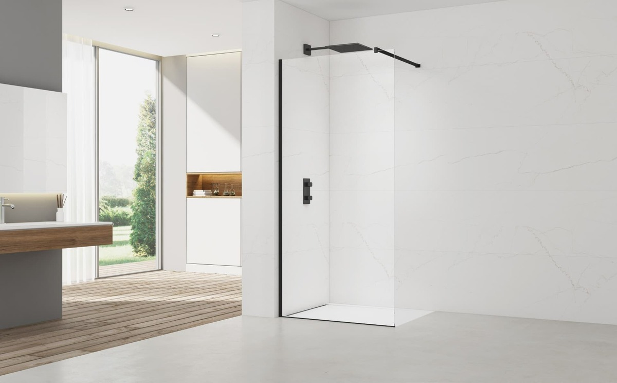 Dotée de profilés et d’un bras en noir mat, cette paroi apportera une touche de sophistication à votre salle de bain, idéale pour concrétiser votre projet de douche à l'italienne.