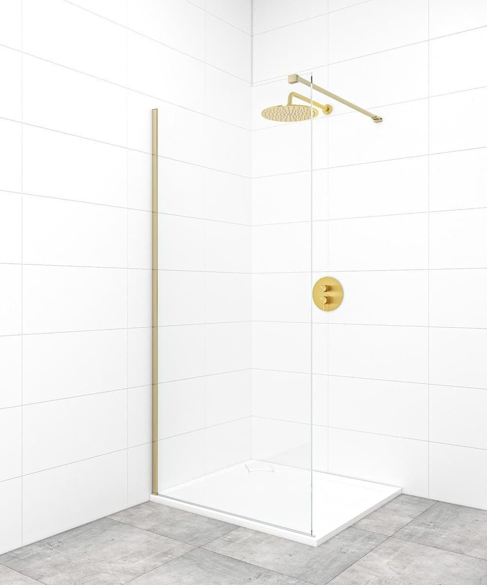Caractéristiques de la paroi de douche Walk-In anticalcaire avec profilés et bras couleur Laiton (SATBWI90PRMO) :