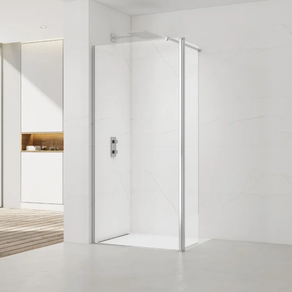 Cette paroi de douche de 80 et son retour cm, en verre Crystal Glass® de 8 mm d’épaisseur avec traitement anticalcaire, combine esthétisme et praticité. Le design épuré est sublimé par des profilés et un bras de fixation en chrome brillant, ajoutant une touche de modernité et de luxe à votre espace. Idéale pour une douche à l'italienne, il créer une sensation d'espace et de luminosité, tout en garantissant une transparence durable grâce au traitement anticalcaire et à la qualité remarquable du verre Crystal Glass®.