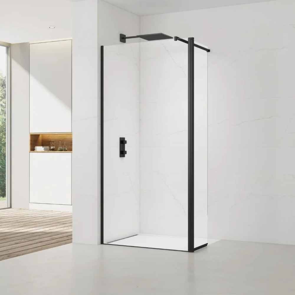 Cette paroi de douche de 100cm et son retour, en verre Crystal Glass® de 8 mm d’épaisseur avec traitement anticalcaire, combine esthétisme et praticité. Le design épuré est sublimé par des profilés et un bras de fixation noir mat, ajoutant une touche de modernité et de luxe à votre espace. Idéale pour une douche à l'italienne, il créer une sensation d'espace et de luminosité, tout en garantissant une transparence durable grâce au traitement anticalcaire et à la qualité remarquable du verre Crystal Glass®.