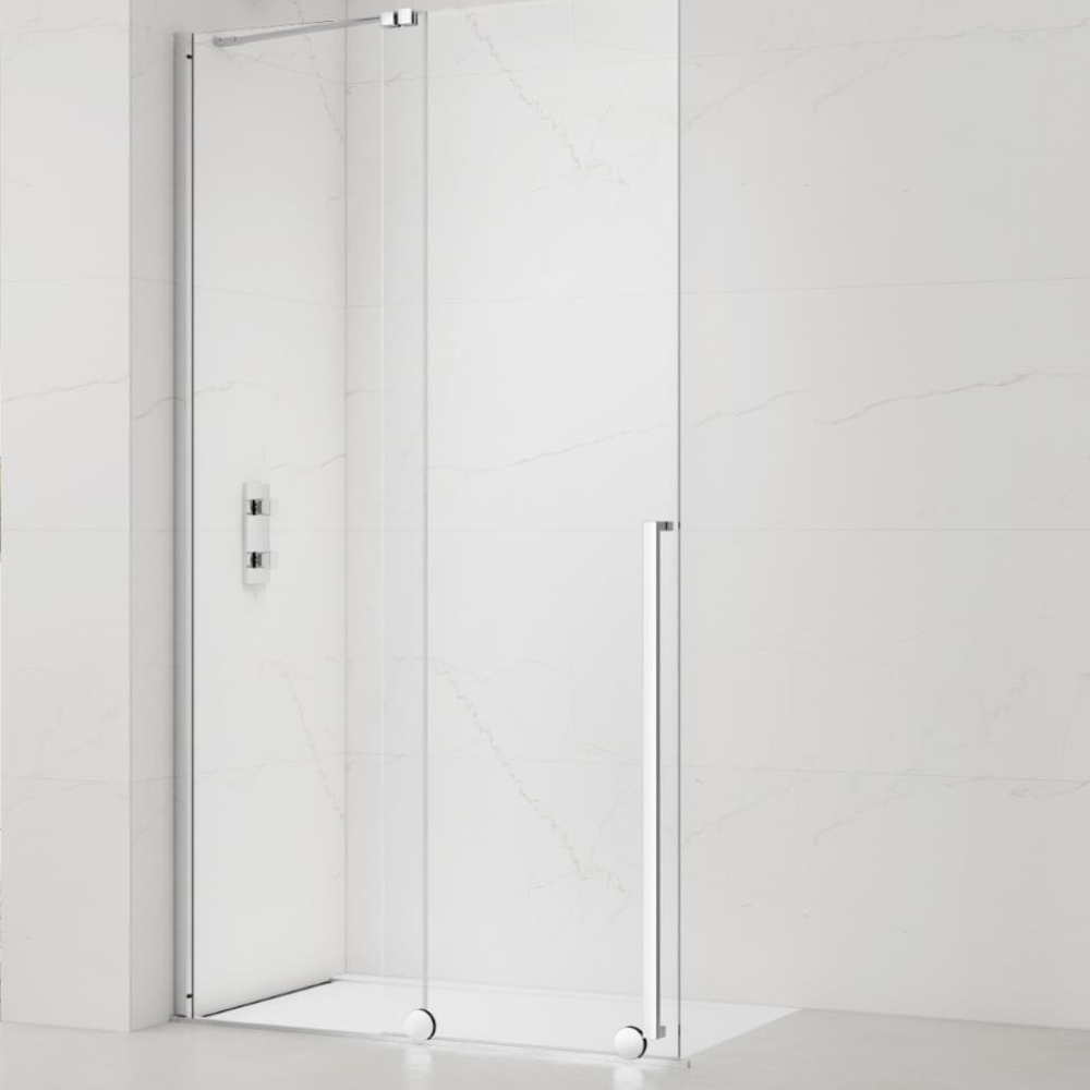 Swiss Aqua Technologies X-MOTION 120x200cm Paroi en verre coulissante Crystal Glass® 8 mm anticalcaire, avec bras et profilés chrome brillant (SATBWIXM1