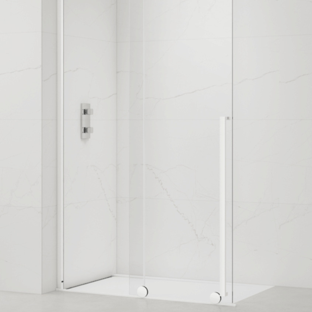 Swiss Aqua Technologies X-MOTION 140x200cm Paroi en verre coulissante Crystal Glass® 8 mm anticalcaire, avec bras et profilés Blanc (SATBWIXM140B)
