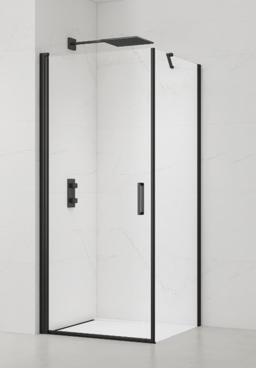 Caractéristiques de l'ensemble porte pivotante/paroi 100x80cm FUSION anticalcaire avec profilés noir mat (SATFUD100S80C) :