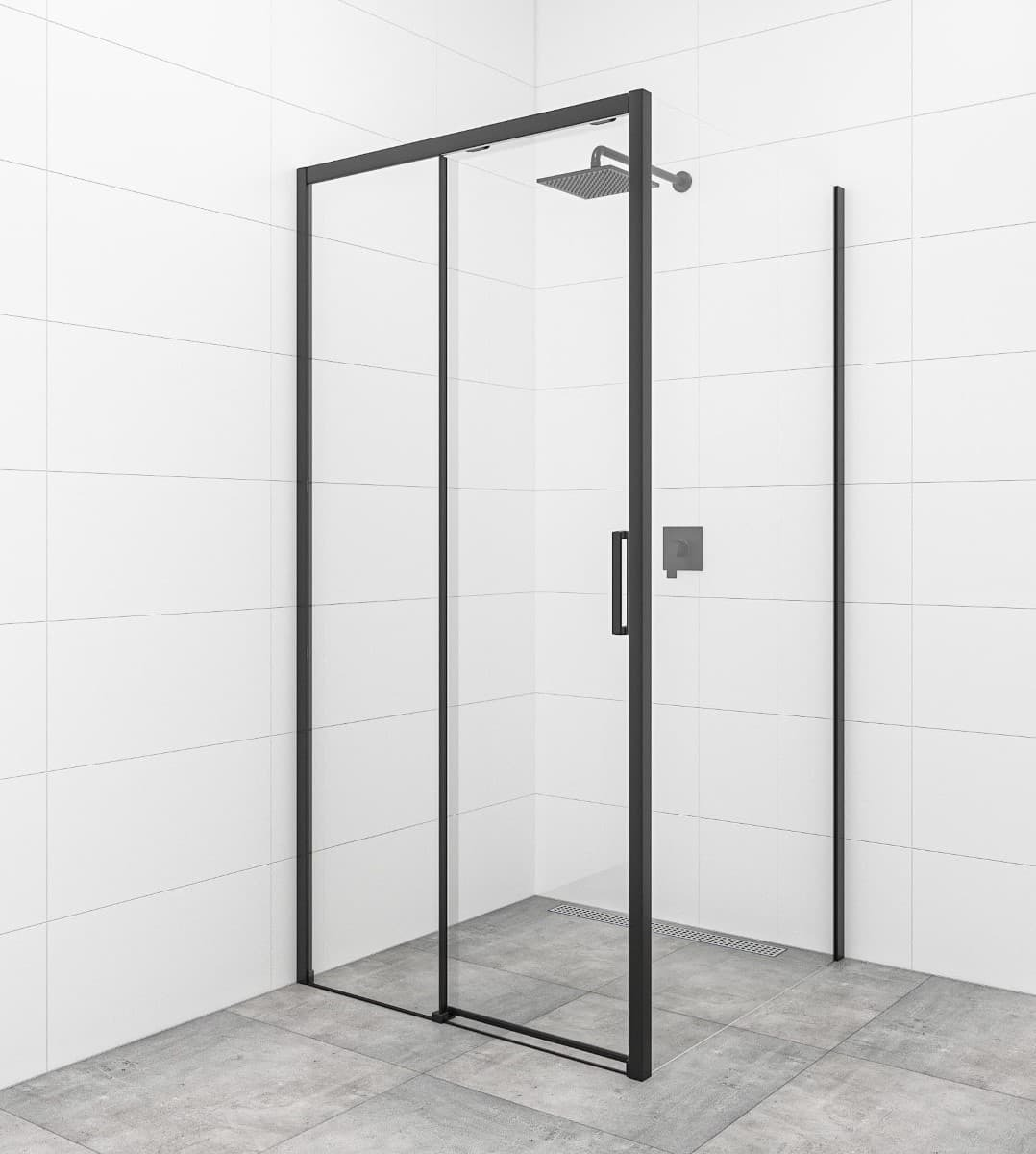 Swiss Aqua Technologies TEX BB ensemble porte coulissante/paroi 140x80cm anticalcaire avec profilés noir mat (SIKOTEXDBB140S80C)