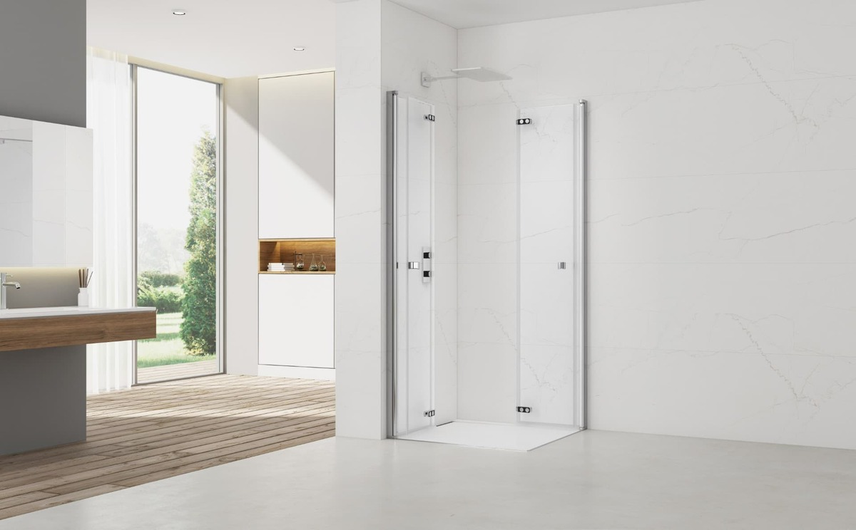 La Porte de douche acces en angle pliante SAT SK incarne l'équilibre parfait entre élégance et performance. Grâce à ses panneaux en verre Crystal Glass® ultra transparent de 6 mm, elle inonde les espaces d’une luminosité pure et éclatante. Le traitement innovant Anticalcaire Easy Clean prolonge la beauté de sa surface en minimisant l'accumulation de calcaire, facilitant ainsi son entretien. Son système de pliage, conçu avec une grande précision, assure une utilisation fluide et intuitive, apportant une solution alliant design soigné et fonctionnalité.