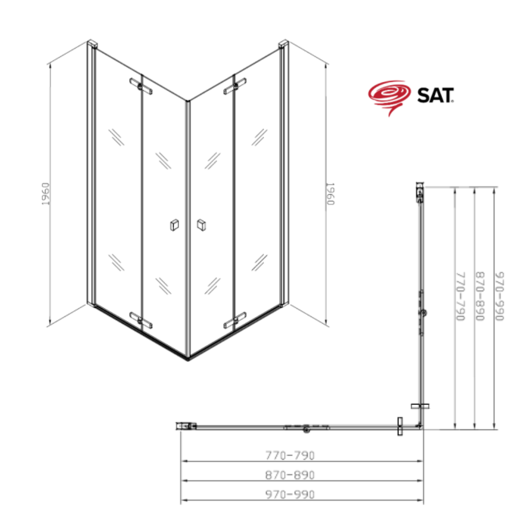 Swiss Aqua Technologies SAT SK Porte de douche acces en angle pliantes 80x80cm anticalcaire avec profilés chrome brillant (SATSK8080)