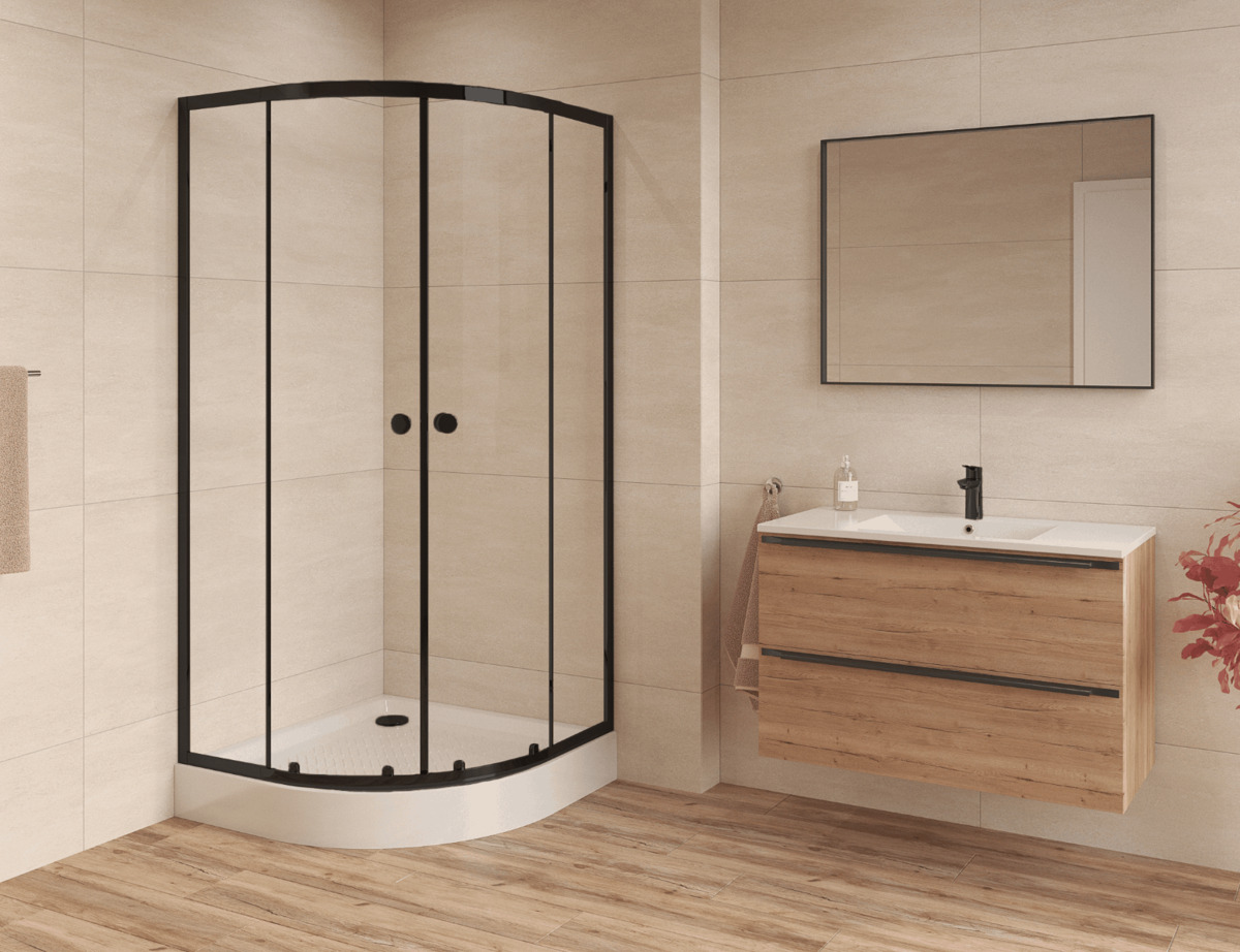 Swiss Aqua Technologies SAT PROJECT Douche quart de cercle 80x80cm coulissante avec profilé noir mat (SATPROMUS80CT)
