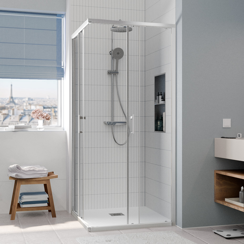 Ceramia CASCADA Porte de douche 80x80x195cm coulissante anticalcaire avec profilés chrome brillant (CERAHC8080C)