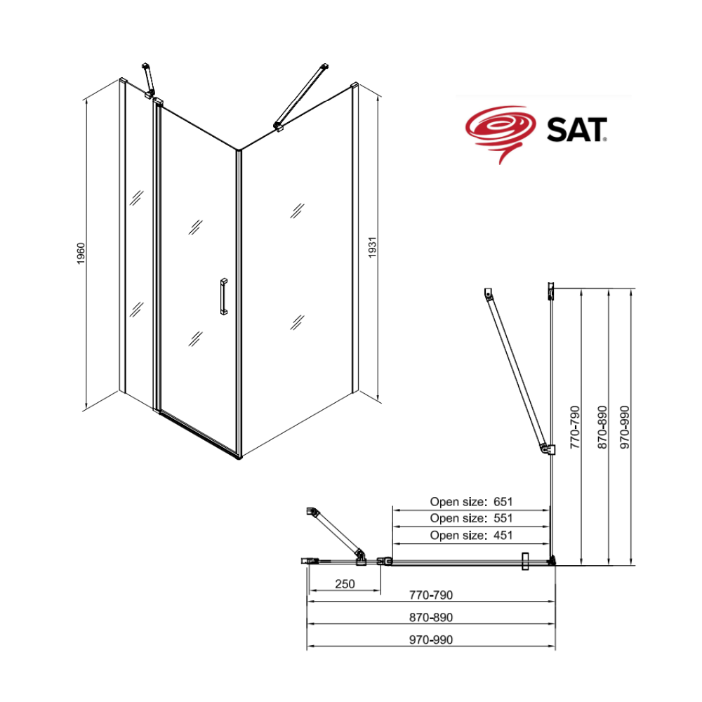 Caractéristiques de l'ensemble porte pivotante/paroi 100x80cm FUSION anticalcaire avec profilés noir mat (SATFUDP100S80C-SET) :
