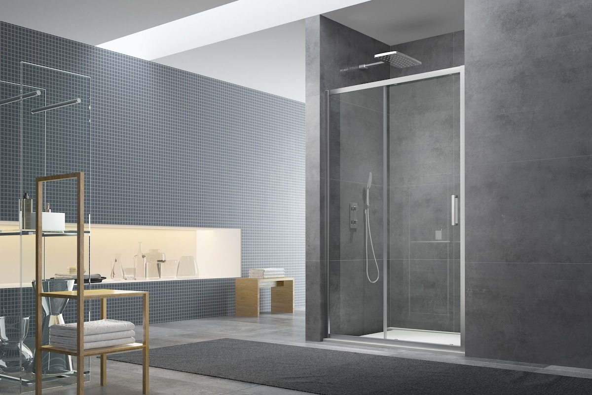 Swiss Aqua Technologies Tex Porte coulissante de douche verre trempé transparent avec glissières silencieuses 120x195cm, Chrome (SIKOTEXD120CRT)