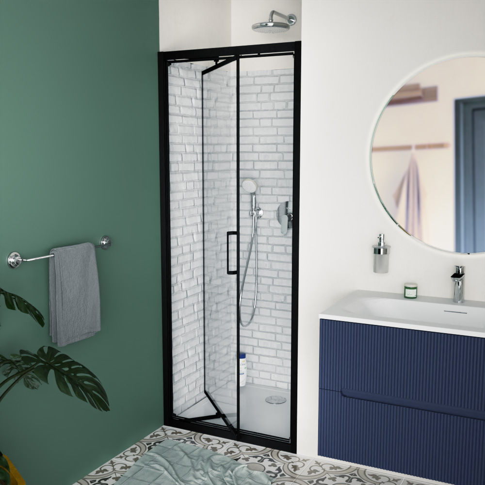 Découvrez la porte à ouverture gain de place SATTEXC80CT. Grâce à son ouverture innovante, vous pourrez l'installer dans les grandes comme les petites salle de bain !