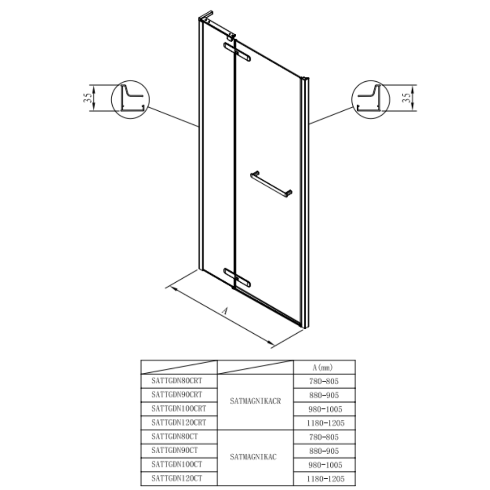 Caractéristiques de la Porte de douche TGD NEW 100x200cm pivotante anticalcaire avec profilés noir mat (SATTGDN100NIKAC) :