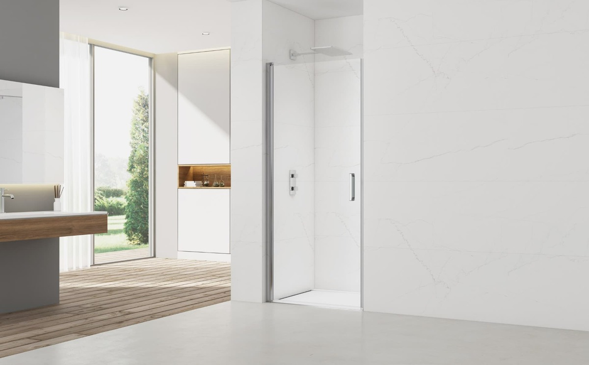 La porte pivotante FUSION allie un design élégant à une qualité supérieure. Dotée de panneaux en verre trempé de 6 mm, elle marie subtilement légèreté et solidité. Son traitement innovant Anticalcaire Easy Clean facilite l'entretien, assurant une clarté durable et sans effort. Le mécanisme pivotant garantit une ouverture fluide et un usage quotidien confortable, combinant modernité esthétique et fonctionnalité pratique.