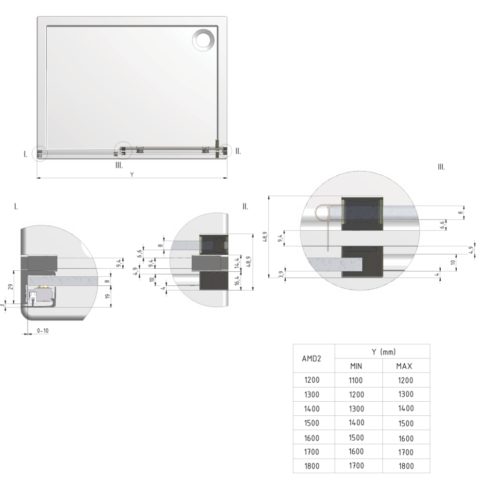 Caractéristiques de la porte de douche 130 cm, orientation gauche et droite avec profilé chrome brillant Roth Ambient Line (620-1300000-00-02) :
